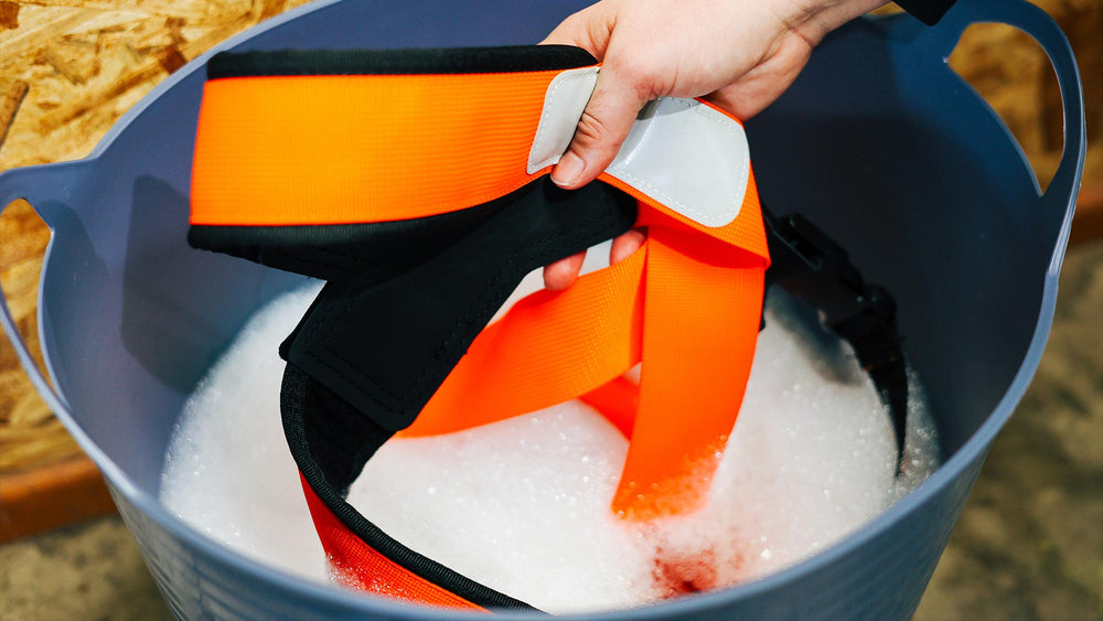Our Buckaroo suspenders are made from a mix of natural and synthetic materials and will need a clean from time to time. To do this, they need to be removed from the Buckaroo Tool Belt. Before undoing them, take a moment to mark the webbing with a permanent marker, this way you can quickly install the braces after cleaning without having to completely readjust to your body.